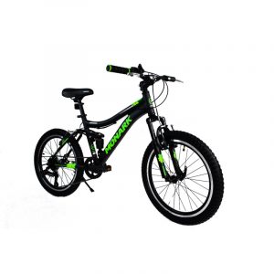 Bicicleta Monark MKP Canyon 20″ negro y verde: Cuenta con 7 velocidades y palanca de cambios Shimano TX30, pedales de resina de plástico, suspensión delantera y posterior. Detalles aquí