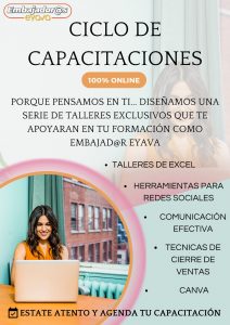 Estas capacitaciones se están impartiendo de manera virtual, brindando flexibilidad a nuestros embajador@s para acceder a la formación desde la comodidad de sus hogares. Al finalizar el ciclo de capacitaciones, se sentirán seguros para llevar sus negocios al siguiente nivel y alcanzar el éxito que se merecen.