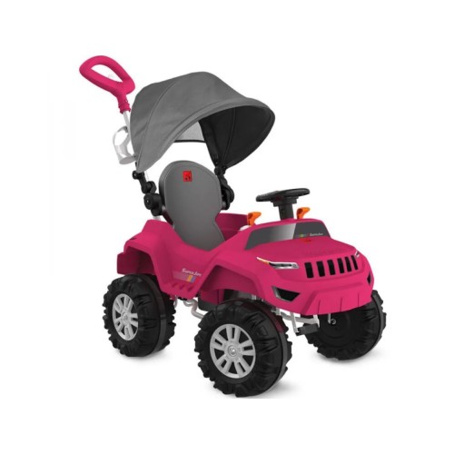 Función paseo: El adulto empuja al niño que va sentado cómodamente dentro del jeep.