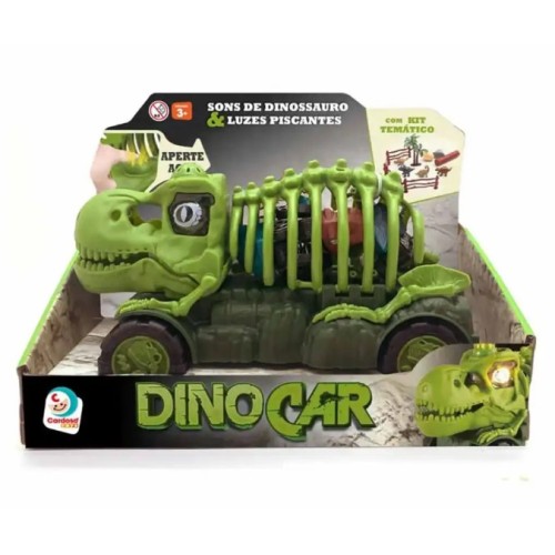 Es un vehículo de juguete que combina un coche con un diseño de dinosaurio.
