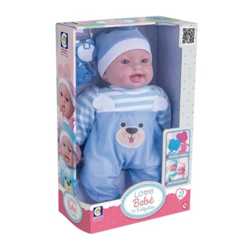 Muñeco Love Bebé vestido con enterizo azul suave.
